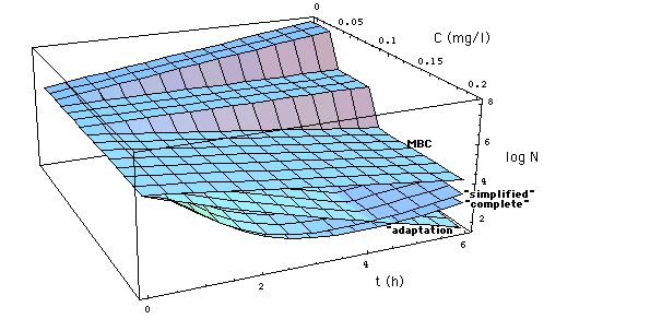 S. aureus populations N[C, t] exposed to meropenem concentration C during