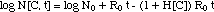 t] of the bacteria over time t under the influence of an antibiotic at